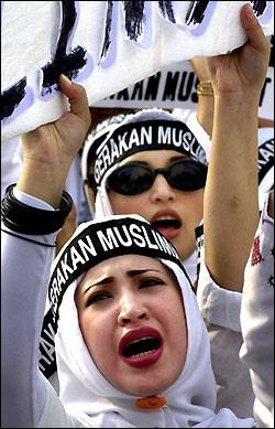 组图:印尼穆斯林妇女集会抗议美英对伊动武