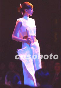 瑞典学生萨拉的时装作品《冰将融化》,以山风花香的简洁意境获得三月北京国际青年时装设计师大赛的最佳材料奖和银奖。作者:贾国荣