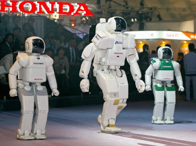 日本本田公司研制的新型机器人P-3 and Asimo在4月2日的横滨2003机器人展上亮相。