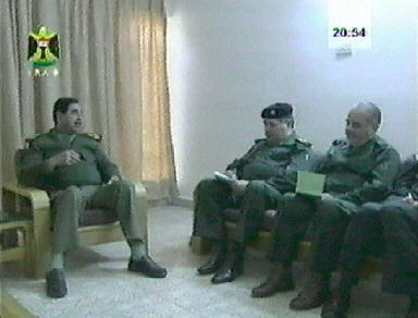 据路透社报道,电视台播音员称,萨达姆正在讨论伊军如何做好巴格达之战的应战准备。