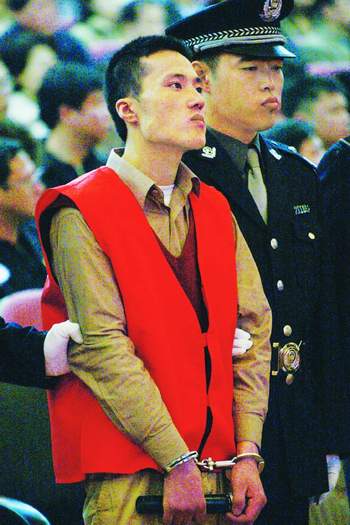 当4名被告人带着脚镣被8名法警押入审判庭时,600余名旁听人员都站了起来。