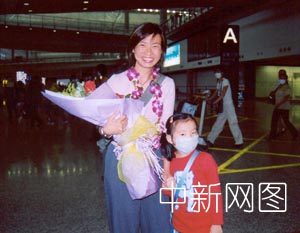 前往接机的还有闾丘露薇的女儿、好友及媒体同行。