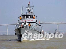 广东边防部门于四月四日晚到四月五日上午,在该省展开打击沿海地区成品油走私活动专项行动,查扣走私红油近百吨。图为公安边防巡逻艇在海上值勤。作者:唐 徐
