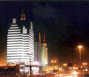 安阳的夜景不同于所看到过的其它城市,它保留着古都特有的部分“原貌”和风俗习惯——古建筑上悬挂着阑珊的红灯笼、“酒家”悬挂的招牌在微风中飘摇,并不太平整但却滑亮的石头铺就的阶梯,通向那在灯光下稍微发暗的朱红大门——你会以为这是到了唐或宋朝的哪一家官宅,但是,当你急不可待地推开这吱呀作响的朱门,展现在眼前的却又是另一番景象:琳琅满目的商品摆满了柜台,各地的游人正在欣赏、挑拣着一个个精美的纪念品。