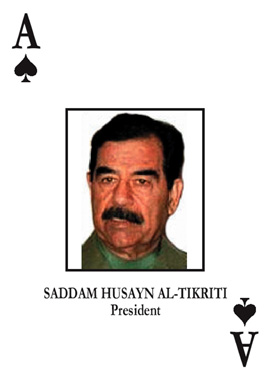 图:扑克牌“黑桃尖”美军通缉犯萨达姆照片
