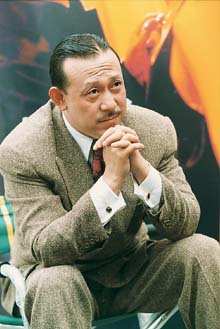 一身老克勒打扮的姜文,从《茉莉花开》拍摄现场忙里偷闲,溜到上影厂小露台接受采访,为电影《绿茶》做宣传。说话中途偶尔接个电话,紫色吊带的手机,翻盖上忽隐忽现一小方卡通粘纸,电话是赵薇打来的,姜文唤她“薇姐”。
