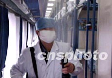 为严防非典型肺炎通过交通工具传播,中国铁路、交通部门要求客运站和车船必须坚持每天彻底打扫卫生和消毒;全封闭空调客车在运行过程中,空调系统要处于强制通风状态。中新社图