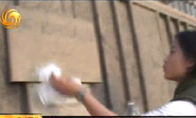 中国驻伊拉克大使馆遭到暴徒两度抢掠一空,香港凤凰卫视女记者隗静星期二(15日)到大使馆内,看到劫后的使馆满目疮痍。隗静已将两面遭掠后留在地面上的中国国旗收好,准备转交给中国外交部,她更用仅有的半瓶矿泉水,将大使馆门前的黄铜门牌擦拭干净。