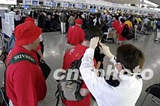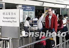 为确保没有SARS病徵的旅客登机,香港4月17日凌晨起实施离境探热新检疫措施,不少旅客均支持新安排,认为令他们更安心。洪少葵 摄
