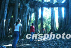 中国云南与缅甸交界的德宏州铜壁关自然保护区中,生长着一棵五百多年树龄的榕树王。它的老干新茎形成214根森林般的环境,至今生机勃勃。作者:贾国荣