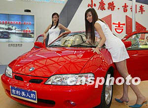 中国吉利集团生产的双门跑车二十一日亮相上海第十届国际汽车展览会,十分抢眼。作者:赵振清