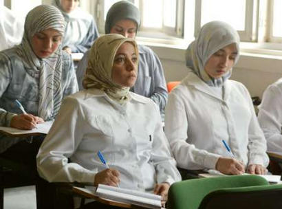 26日,伊拉克学生在巴格达的萨达姆·侯赛因大学上她们近一个月来的第一堂课。(路透)