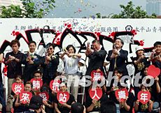 香港基督教巴拿巴爱心服务团及太平山青年商会联合举办的“动感青年放光芒”活动,4月27日在文化中心举行,主礼嘉宾及动感青年在开幕仪式上,表达对香港的爱心和关怀,传递一分光和热,祝福前线医护人员。洪少葵 摄