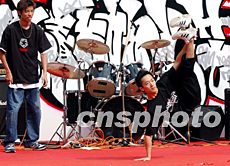 香港街舞组合 UFC 街舞青年,4月27日在文化中心广场一展身手,为“动感青年放光芒”活动助兴表演。洪少葵 摄