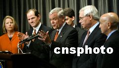 4月28日,美国证券交易委员会主席威廉·唐纳森在华盛顿召开的新闻发布会上宣布,全美十大投资公司因违反有关规则被罚款14亿美元。Ic/cnsphoto 摄