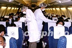 广州四月底加强口岸防治“非典”力度,白云机场向入境旅客发放“入境健康申明卡”。作者:白云