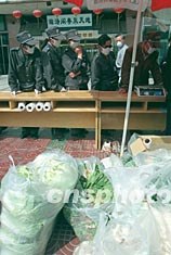 四月下旬的北京蔬菜市场受预防“非典”影响,价格曾一度上涨。政府采取调集限价供应等有效措施,使市场蔬菜价格现已全面回落。作者:张勤