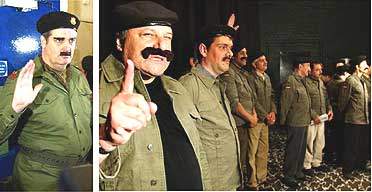 在今天的测试中,那些长得像萨达姆的人被要求做一些萨达姆特有的动作,比如把手伸出来像萨达姆总统那样挥手致意,这倒挺有意思,要知道连萨达姆本人也有好几个星期没有机会做这些动作了。来自伦敦北部的34岁的史蒂夫·哈里斯是一位演员、导演、游戏类节目主持人,他说他非常喜欢扮演这位独裁者。他也戴着萨达姆式的胡子,脸上化的妆有点像被晒黑了一样,这正是萨达姆的肤色。他说:“萨达姆是个有才华的人物,他是那么的自信自负,作为一个演员,就要扮演这种有传奇色彩的人物。”(闻新芳)