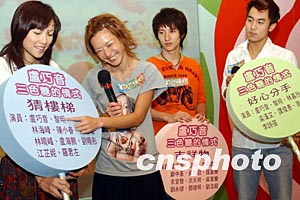 由香港无线电视制作的《卢巧音~三色糖的情式》特辑首映会五月二日在香港举行,图为卢巧音、谭俊彦、周永恒、江芷妮等出席首映会。钱兴强 摄