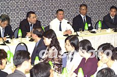 澳门特区行政长官何厚铧十一日上午来到澳门旅游活动中心与澳门仁伯爵综合医院和镜湖医院及前线医护人员进行座谈,鼓励他们为防治和治疗非典型肺炎做出更大的努力。中新社记者:李刚
