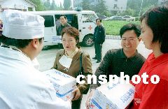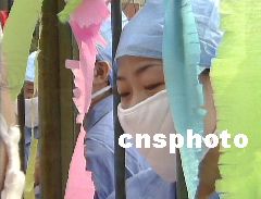 奋战在北京抗击非典型肺炎第一线的医护人员: