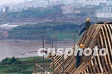 长江三峡库区张飞庙搬迁在建,将在七月一日开放。云阳县新建的张飞庙,是在旧庙位置沿江上溯32公里处的南岸石盘镇龙安村狮子岩下建成,其基址保持了原庙依山临江及与县城隔江相望的特征。作者:孙荣刚
