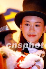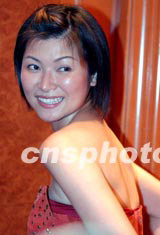 香港艺员黄卓玲,5月16日一身低胸露背装出席《谴绻仙凡间》电视剧收视祝捷活动。中新社传真 洪少葵 摄
