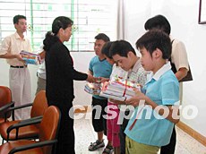 五月十八日是中国助残日,广东汕头市残联及澄海区负责人为残疾学生送去助学金和学习书籍。作者:曾干普
