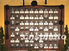 追悼会会场正前方悬挂着鲜花翠柏簇拥的70名遇难官兵的遗像。1200名海军官兵和部分亲属代表参加了追悼会。作者:中新社