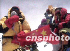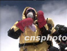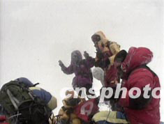 中国登山队五月二十一日下午十三点三十八分胜利登上珠穆朗玛峰峰顶。中新社 图