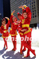 美国芝加哥五月举办亚裔文化节系列活动,来自不同国家的学生21日在市中心广场演出亚洲歌舞,其中芝市公立学校的女童们一身戎装,表演由中国教师金秋月编导的舞蹈“花木兰”。中新社记者:王瑶
