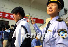 在SARS阴霾尚未完全散去的复课首日,北京各学校大多作足了“戒炎”功夫。记者今晨在北京八中看到,一大块绿色消毒毯已在校园门口铺展开,四台红外线体温测试仪亦“严阵以待”。
