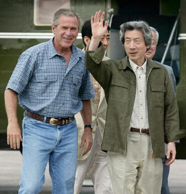 小泉与美国总统布什在得克萨斯州克劳福德的私人农场举行会谈,两国领导人将就伊拉克重建和朝鲜核问题等交换意见。