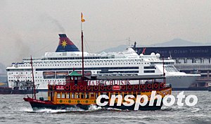 世界卫生组织5月23日起解除对香港和广东省维持个多月的旅游警告,称两地已有效控制SARS疫情。消息无疑是香港重振经济的强心针。图为穿梭在维多利亚港湾的海上邮轮和仿古游船将迎接游客重临香江。洪少葵 摄