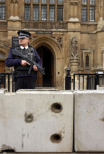 中新网5月24日电 据英国《泰晤士报》报道,为了避免伦敦市尤其是英国国会大厦遭受恐怖分子的袭击,伦敦市日前全面加强了警戒措施。一夜之间,英国国会大厦的门口道路已经竖起了一道水泥城墙。伦敦市警方也全面提高了整个伦敦市的安全戒备级别。