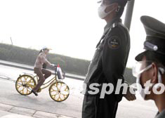 五月下旬,北京的上班族骑单车经过“非典”医院不再恐慌。随着北京“非典”感染人数下降到个位数以及人们对疫情的不断了解,市民的恐惧心理减轻了。中新社记者:张宇