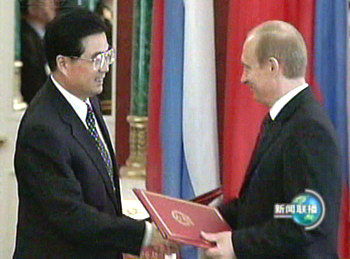 中新网5月27日电 中国国家主席胡锦涛和俄罗斯总统普京27日在莫斯科签署中华人民共和国与俄罗斯联邦联合声明,双方表示要继续全面加强两国战略协作伙伴关系,为两国人民利益和地区安全与稳定作出贡献。