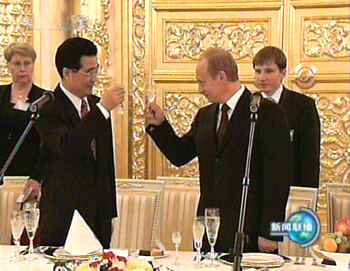 普京指出,胡锦涛担任中国国家主席后首次出访的第一站就是俄罗斯,再次体现出中方领导人对发展两国关系的重视。刚刚进行的会谈内容十分丰富且富有成效,对双方都有益处。