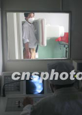 五月二十八日,一位外地青年在北京市平安医院放射科接受胸透检查。根据北京市的有关规定:近期来北京务工经商的外地人员须经过体温、肝功、胸透及常规检测合格,领取《健康证》后方可就业。中新社记者:史利