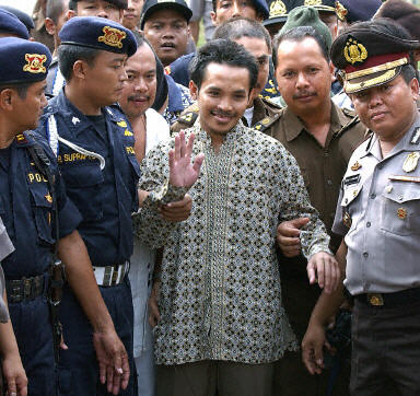 今天出庭作供的四人是穆赫拉斯、萨穆德拉、伊姆龙和穆巴拉克。当局特别安排把四人从巴厘岛送到首都雅加达,出庭作供。