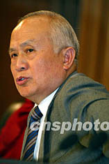中国中东问题特使王世杰二十八日在外交部举行的新闻发布会上,阐述中东和平路线图产生后中国对中东问题的五点主张。中新社记者 毛建军 摄