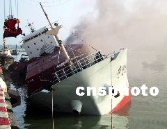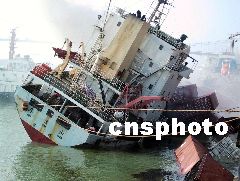 据悉,该船是混装船,其中装有化学品甲苯本烯酸20吨,过硫酸纳20.16吨和过氧化氢16吨。共总有100多集装箱。据相关人员介绍,此次救助活动中,没有造成水域和空气的污染。刘贤灵 摄