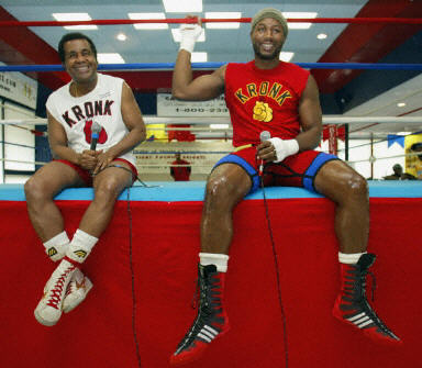北京时间5月30日凌晨,英国拳王刘易斯为备战与约翰迅的WBC重量级拳王争霸赛,在宾西法尼亚进行训练。图为刘易斯训练前接受采访。
