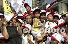 三十一日在“阳光行动 广州之旅”启团仪式的主会场,“国旅假期”现场推出低价港澳游,基本团费只有一百元人民币,吸引了不少广州市民前往咨询及报名。作者:梁永强
