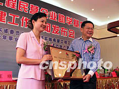 中新社广州五月三十一日电(王华邓剑平)广东民营企业致富先助学,向希望工程捐款设立专项助学基金。今天下午,广州富力地产集团率先向希望工程捐赠一千五百万元人民币,设立希望工程民营企业助学基金的首个专项命名基金。