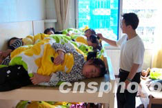 浙江省一些民办幼儿园内,“男教师”越来越受到孩子们的欢迎。“男教师”在六一前悉心照料午休的小朋友。作者:黄晓慧