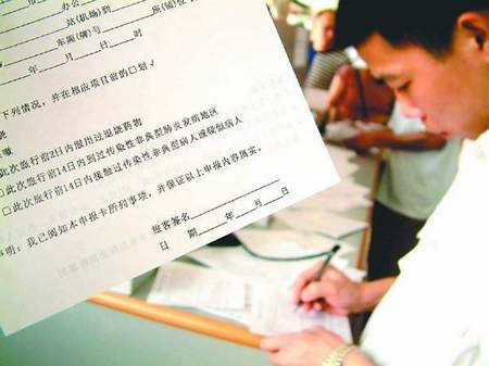 记者还发现,新版的健康申报表的规格有了统一,全部使用32开大小(A5)的纸张,而原来在火车站和民航部门里,申报表的纸张大小各不相同,有的16开大小,有的8开大小,也有使用32开大的。这次,新版的健康申报表则统一了规格,一律32开大小的纸张。