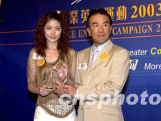 歌星陈慧琳6月2日在香港出席“职业英语运动2003”记者会。中新社记者 邓庆乐