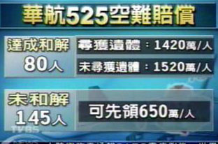 据了解,“华航525空难”发生后,已经有80位罹难者家属与华航达成和解,获得至少1420万元新台币的赔偿,其余145位罹难者家属,则是分别委托律师,前往美国控告飞机制造商波音公司以及华航。在空难中痛失亲人的自救会会长张立夫说,他们想尽一切办法打国际官司,要的不是钱,而是希望悲剧不要重演。