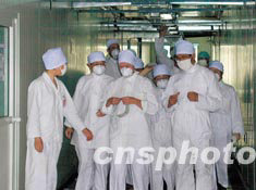 小汤山医院人员为世界卫生组织视察组专家戴好口罩